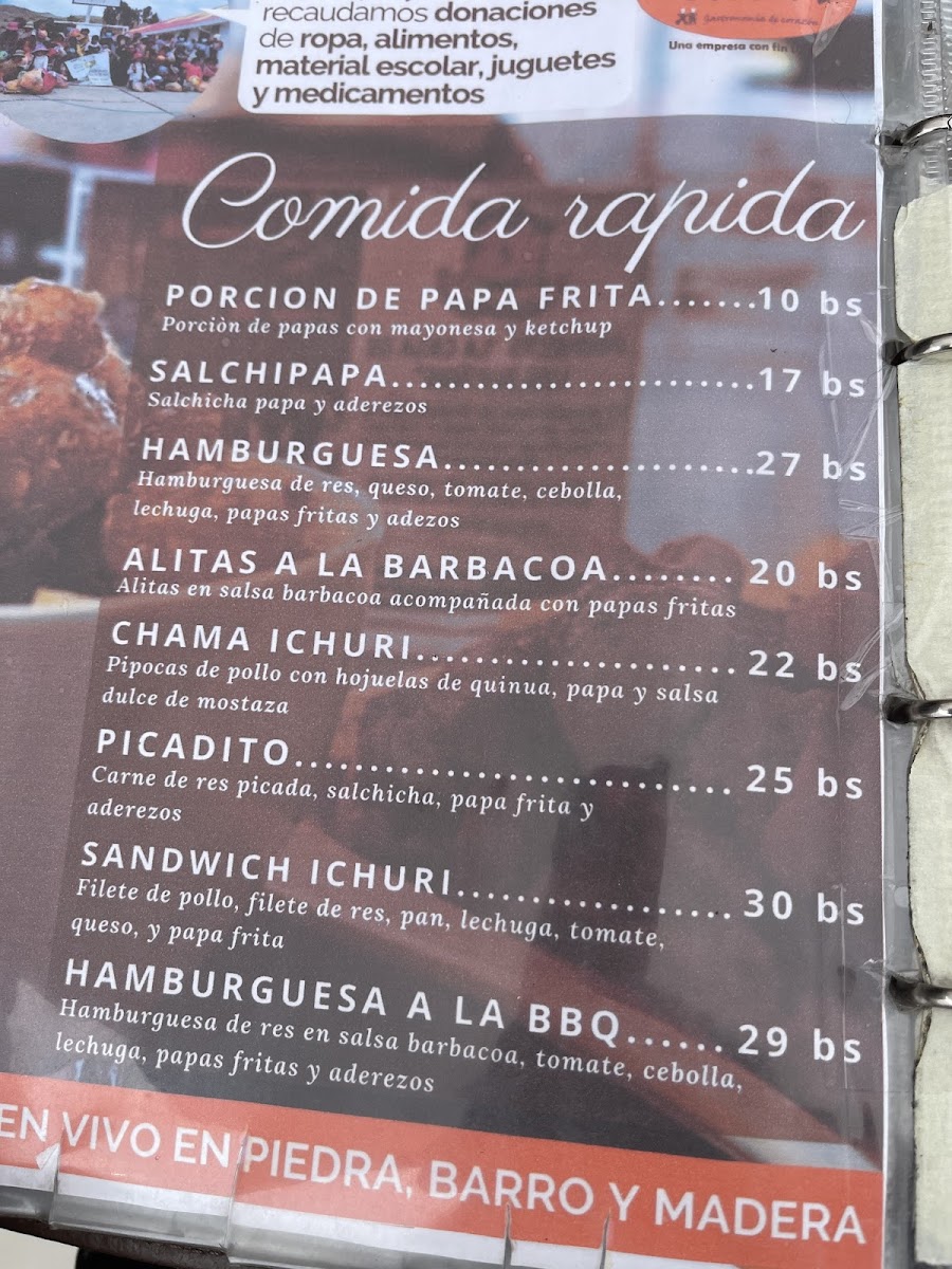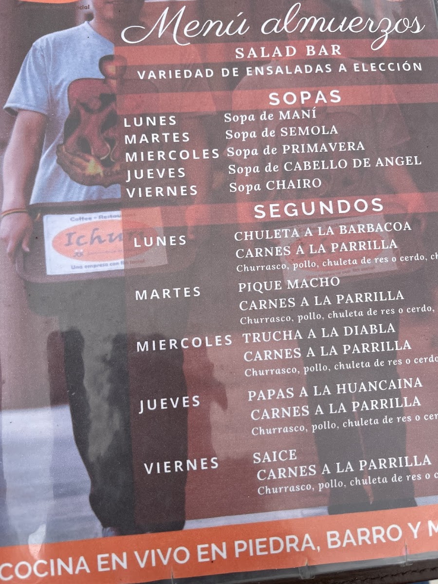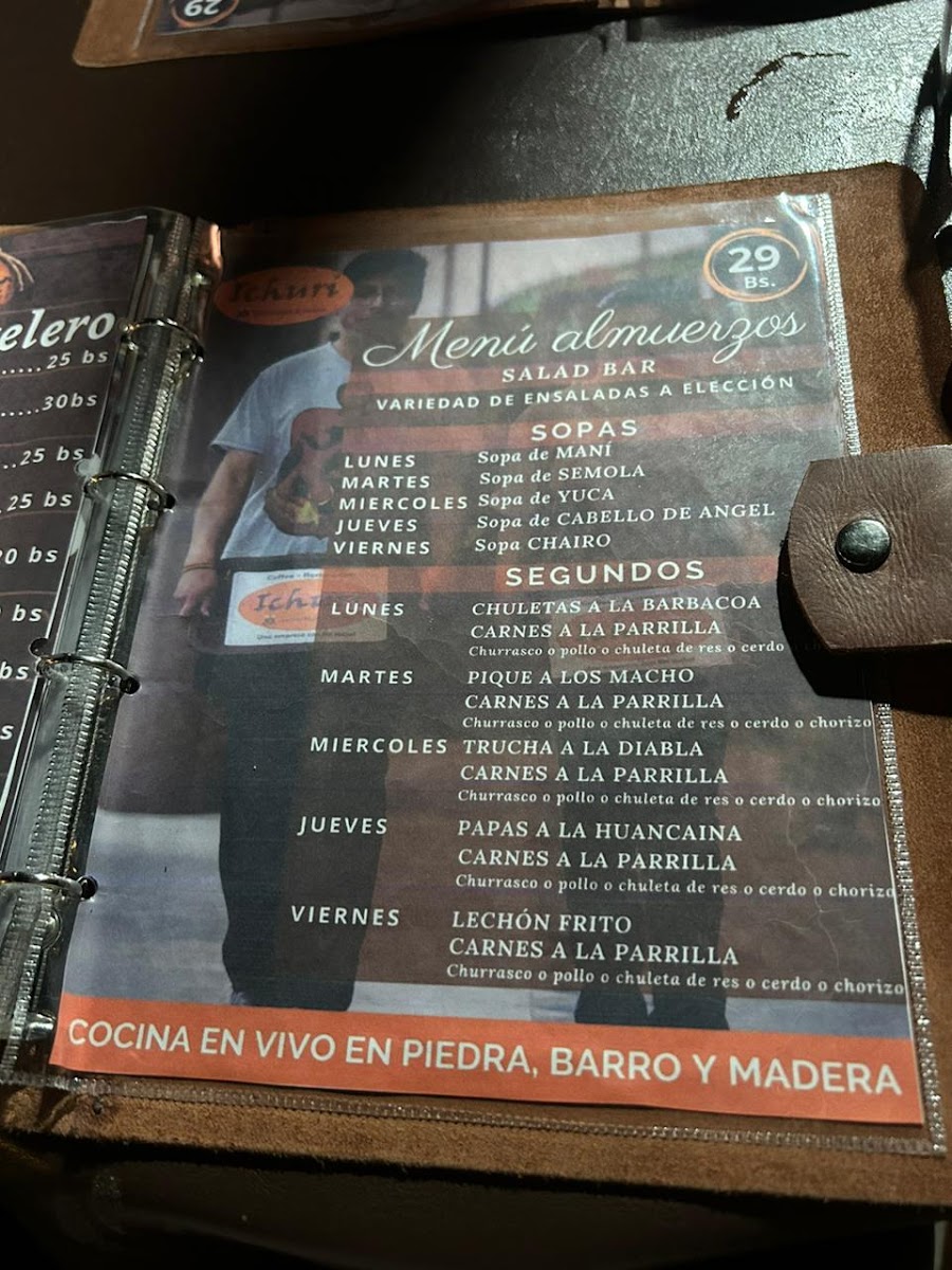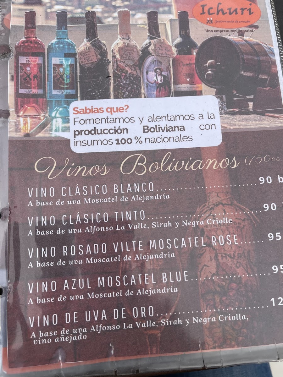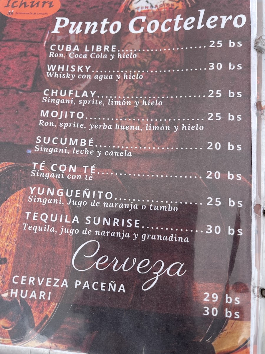 The menu at Ichuri Coffee - Restaurant offers a delightful range of dishes that combine traditional Bolivian flavors with international influences. Among the standout options, Vino is a must-try for wine enthusiasts, with a selection that complements the diverse menu. For those craving hearty grilled meats, Churrasco and Pollo A la Parrilla are both flavorful choices. The Truchas A la Plancha offers a fresh fish option, perfectly seasoned and grilled, making it a great pick for seafood lovers.